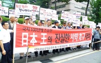 “한일과거사 문제는 아직 해결되지 않았다. 일본 천왕의 진심어린 사과 없이는 새로운 한일 관계를 기대하기 어렵다.”독립유공자유족회 등 11개 단체는 3일 오전 11시 종로구 일본대사관 앞에서 1965년 한일협정 전면개정과 일왕의 사죄를 촉구하는 집회를 열었다.독립유공자