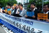 진보성향 곽노현 교육감이 밝힌 학생인권조례 제정 계획에 대해 시민단체들은 “학생인권은 보장돼야 하지만 교권을 침해하는 것은 그 의도가 의심스럽다”며 반대하고 나섰다.시민단체 바른사회시민회의, 좋은학교만들기 학부모 모임 등은 7일 오전 11시 서울시교육청 앞에 모여 곽노