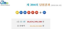 로또 394회 '초대박'…1등 1명, 106억 독차지