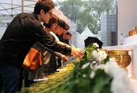 해군 초계함 천안함 침몰로 희생당한 46용사에 대한 '해군장'이 3일째 치러지고 있는 가운데 서울광장 합동분향소를 찾는 조문객들의 발길이 잦아지고 있다. 서울시 공식집계에 따르면 26일 자정 기준으로 1만492명이 다녀간 것으로 집계됐다. 순국용사들의 넋을 기리는 행렬