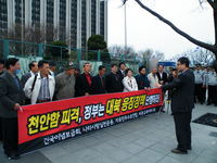 21일 서울 세종로 통일부 앞에서 건국이념보급회, 나라사랑실천운동, 자유민주수호연합, 바른교육어머니회 등 시민단체들은 천안함 피격과 관련해 기자회견을 열고 정부의 단호한 조치를 요구했다.이 단체들은 지난 20일 이명박 대통령이 여야 3당 대표들과 청와대 오찬 간담회에서
