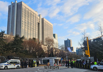 윤석열 전 대통령의 내란 우두머리 혐의 사건의 결심공판이 시작되자 서울중앙지법 앞은 긴장감으로 가득 찼다. 윤 전 대통령의 지지자들은 법원 앞에 모여 재판 진행 경과를 지켜보고 있다.9일 오전 8시쯤 서울중앙지법 앞은 윤 전 대통령의 무죄를 주장하는 지지자들 50여 명