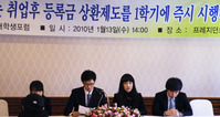 한국대학생포럼 회원들이 13일 취업 후 등록금 상환제도의 1학기 시행을 촉구 기자회견을 열었다. ⓒ 뉴데일리 “대학생들과 학부모들의 마음을 졸이게 만들고 다가오는 새 학기에 대한 기대를 걱정과 불안으로 멋지게 탈바꿈 시켜주신 국회가 원망스럽습니다.”한국대학생포럼 회원들