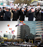 우파 시민단체 노노데모(불법과격시위반대)버락 오바마 미국 대통령 방한에 18일 "한미연합사령부 해체 및 전시작전통제권 전환 사안에 대해 양국 대통령이 재검토를 해달라"고 촉구했다.
