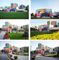 서울시는 오는 9일 한글날과 '서울디자인올림픽2009'를 기념해 신청사공사 가림막전면에 대형아트벽을 쳐 오방색 평면도형과, '서울사랑'이라는 단어로 구성된 모빌아트 작품을 설치했다고 8일 밝혔다.대형아트벽에는 가로75m, 세로20m 지름 11㎝의 원형 플라스틱 패널 1
