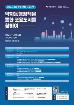 서울연구원이 오는 22일 오전 10시 페럼타워 3층 페럼홀에서 '약자동행정책을 통한 포용도시를 향하여'라는 주제로 '2024 국내 학회 연합 심포지엄'을 개최한다고 21일 밝혔다.이번 심포지엄은 서울시의 약자동행 정책 확산을 위해 마련된 자리로, 국내 8개 학회 전문가