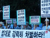김대중 정권때인 지난 1998년 국정원에서 강제 퇴직당한 직원들 모임인 국가사랑모임(국사모)이 주축이 된 국가안보기능회복추진위원회(상임대표 송영인) 회원 200여명은 8일 오후 서울 내곡동 국가정보원 앞에서 ‘국정원 대학살 만행 진상조사 공개발표 촉구대회’를 열고 국정