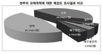 이명박 정부 규제개혁에 대한 만족도가 크게 높아진 것으로 조사됐다.출총제 폐지나 수도권 규제, 금산분리 규제 완화 등 MB정부의 기업에 대한 대형규제가 완화되면서 규제개혁에 대한 기업과 관련 전문가들의 만족도가 높아진 것이다.정국경제인연합회(전경련)은 '이명박 정부의