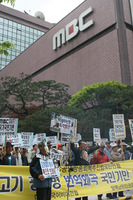 MBC공영방송회복추진범국민연합(대표 박찬성)은 22일 MBC PD수첩 미국산쇠고기 광우병 왜곡보도 관련 "경영진과 PD수첩제작진은 즉각 물러가라"고 촉구하며 "MBC방문진은 일산제작센터 비리진실을 즉각 국민 앞에 공개하라"고 규탄했다.이들은 이날 서울 여의도 MBC센터