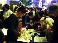 노무현 전 대통령을 추모하기 위해 서울 덕수궁 대한문 앞에 설치된 임시 분향소를 찾은 시민들 중 일부가 24일 저녁 대한문 인근 도로를 점거한 채 시위를 벌였다. 대한문 분향소 앞에 모여 있던 시민 100여명은 이날 오후 8시10분께 `민주세력 386'이라고 쓰
