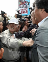 노무현 전 대통령이 검찰에 출석한 30일 오후 서울 서초동 대검찰청 맞은편 보도에서 노 전 대통령 지지자들과 반대자들 사이에 몸싸움이 벌어졌다. 오후 2시25분께 시작된 양측의 싸움은 노 전 대통령 지지자 수십명이 대검 청사 건너편 가로수에 걸어 놓은 현수막을 보수단체