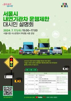서울시가 17일 오후 3시 시청 서소문청사 후생동 강당에서 2025년 내연기관차 운행제한 확대·강화를 앞두고 설명회를 연다고 9일 밝혔다.이번 설명회는 내연기관차 운행 제한 정책을 효과적으로 실행하고 시민과 전문가 등의 다양한 의견을 청취하기 위해 마련됐다.최