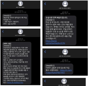 #직장인 박모씨(35)는 최근 하루에 최소 2건에서 많게는 5건의 스팸 문자를 받고 있다. ‘30% 수익 급등주 받아가세요’, ‘손실 나면 전액 배상’ 등 내용도 가지가지다. 아무리 번호를 차단해도 다른 번호로 비슷한 내용의 문자가 끊이지 않는다. 박씨는 일상 생활의