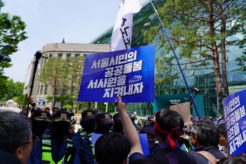 오세훈 서울시장과 면담을 하겠다며 서울시청에 무단 진입하려 한 민주노총 조합원들이 경찰에 붙잡혔다.서울 남대문경찰서는 공무집행방해 혐의로 민주노총 공공운수노조 조합원 4명을 현행범 체포했다고 14일 밝혔다.이들은 이날 오전 서울시사회서비스원 지원 중단 조례 통과에 반발