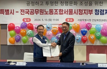 서울시가 청렴도 1등급 달성을 위해 양대 노조와 청렴함을 다짐했다. 시는 지난달 24일 서울특별시공무원노동조합과 서약식을 맺은데 이어 전날 전국공무원노동조합 서울시청지부와 '반부패·청렴 자율실천 서약식'을 개최했다고 14일 밝혔다.이번 서약식에는 김상한 행정1