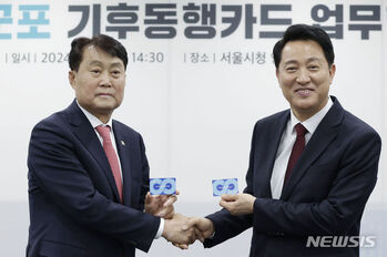 서울시 기후동행카드에 군포시가 참여하기로 했다.오세훈 서울시장과 하은호 군포시장은 31일 오후 2시30분 서울시청에서 '서울시-군포시 기후동행카드 참여 업무협약'을 체결했다. 이번 협약을 통해 양 도시는 군포지역 지하철 1·4호선 7개 역에서 기후동행카드를 사용할 수