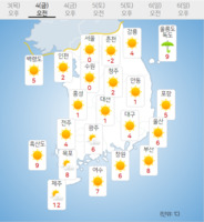 금요일인 4일은 전국이 대체로 맑겠으나, 전라 서해안과 제주도는 가끔 구름이 많겠다. 울릉도와 독도는 대체로 흐리고 가끔 5~20㎜의 비가 내리겠다.이날은 이번 가을 들어 기온이 가장 낮아 춥겠다.기상청은 "새벽부터 아침 사이 내륙 대부분 지역에 서리가 내리고