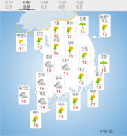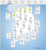 [오늘 날씨] 대체로 흐리고 한때 비… 최저기온 10도