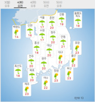 화요일인 4일은 전국이 흐리겠다. 또 북서쪽에서 다가오는 찬 공기가 우리나라로 유입된 따뜻한 공기와 충돌해 비구름대가 발달하겠고, 이 비구름대는 북서쪽에서 남동쪽으로 이동하면서 전국 대부분 지역에 비가 내리겠다.이날은 전국이 동해북부해상에서 동쪽으로 이동하는 저기압의