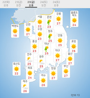 절기상 낮과 밤의 길이가 같아지는 추분(秋分)이자 금요일인 23일은 전국에 가끔 구름이 많겠다.중부지방은 오전에 대체로 흐리다가 강원영동을 제외한 지역에 오전 9시부터 오후 3시 사이에 비가 오는 곳이 있겠다.예상 강수량은 수도권·서해5도 5∼10㎜, 강원영서·충청권
