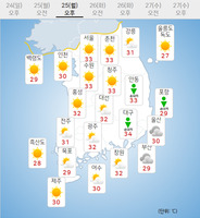[오늘 날씨] 낮 최고 34도 찜통더위… 일부 내륙·산지 소나기