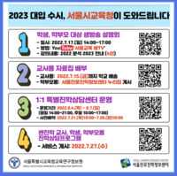 서울시교육청 산하 교육연구정보원(이하 정보원)이 2023 대입 수시모집을 앞두고 설명회 및 상담프로그램을 운영한다고 밝혔다.14일 시교육청에 따르면, 정보원은 '쎈진학 학생·학부모 대상 대입 설명회'·'쎈진학 1:1 특별진학상담센터'를 통해 수험생과 학부모들에게 수시모
