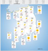 금요일인 6일은 전국에 가끔 구름이 많다가 저녁부터 차차 흐려지겠다.제주도 산지는 오후 12~15시 5㎜ 안팎의 소나기가 예보됐다.경기 북부와 강원 영서 북부에도 늦은 밤부터 0.1㎜ 미만의 빗방울이 떨어지는 곳이 있겠다.건조특보가 발효된 강원영동과 경북북동산지, 경북