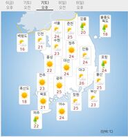 어린이날인 5일은 전국이 맑겠다. 이날은 절기상 여름의 시작이라는 입하(立夏)이기도 하다.아침 최저기온은 7∼18도, 낮 최고기온은 평년과 비슷하거나 조금 높아 21∼28도로 예보됐다. 기상청은 "낮과 밤의 기온 차가 15∼20도로 매우 크겠으니 건강관리에 각
