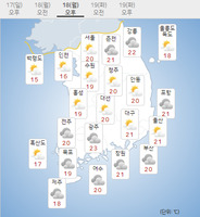 월요일인 18일은 전국에 구름이 많겠다.이날 전국은 중국 북부지방에서 남하하는 고기압의 가장자리에 들겠다.특히 기상청은 "대기가 매우 건조하겠으니 화재에 유의해야겠고 낮과 밤의 기온 차가 매우 크겠다"고 전했다.이어 기상청은 "바다의 물결은 동해 앞바다에서 0.5∼1.