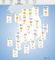 하늘이 차츰 맑아진다는 청명(淸明)이자 식목일을 맞은 화요일인 5일은 전국에 가끔 구름이 많겠다.이날 전국은 남해상에 위치한 고기압의 가장자리에 들겠다.기상청은 "내륙을 중심으로 낮과 밤의 기온 차가 15∼20도로 매우 크겠다"고 전했다.그러면서 기상청은 "중부 내륙과