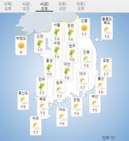 [오늘 날씨] 중부지방 낮부터 비… 일교차 15도 이상