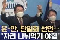 앞서 이재명·김동연 대선후보가 단일화에 합의한 소식을 <이재명, 명동서 "확실히 정치교체"‥김동연과 '정책연대' 성사>라는 제목으로 보도했던 MBC가 지난 3일 윤석열 국민의힘 대선후보와 안철수 국민의당 대선후보가 단일화 선언을 한 것을 두고 <윤-안,