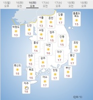 화요일인 16일은 전국이 대체로 맑겠으나 내륙을 중심으로 밤부터 구름이 많겠다.이날 전국은 중국 산둥반도 부근에 위치한 고기압의 영향을 받겠다.기상청은 "전국이 대체로 맑겠으나 오늘 밤부터 내일 새벽 사이에는 구름많겠다"고 밝혔다. 그러면서 "전국 대부분 지역