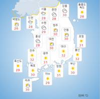 [오늘의 날씨] 낮 최고기온 30도 이상… 남부지역 소나기 소식도