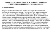미국 정부는 10일(현지시간) 북한 당국이 주민들의 종교 활동에 대해 사형과 고문 등 가혹한 처벌을 가하고 있다고 밝히며 15년째 북한을 종교자유 특별우려국으로 지정했다.美국무부는 이날 '2015 국제 종교자유 연례보고서'를 발표하고 북한이 헌법에 종교의 자유를 보장하