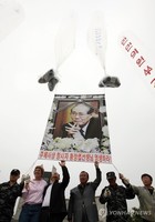 북한 노동당 창건 66주년이자 황장엽 전 노동당 비서 1주기인 10일 탈북자단체들이 임진각에서 대북전단을 살포했다. 자유북한운동연합 회원 20여명은 이날 오전 11시45분께 경기도 파주시 임진각 망배단에서 황 전 비서의 사진과 대북전단 20만장, 미화 1달러 지폐