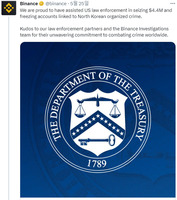 미국 사법당국이 북한의 조직범죄와 연계된 자산 440만 달러(약 58억5000만 원)를 압류해 계좌를 동결했다고 세계 최대 암호화폐 거래소인 바이낸스가 25일(현지시간) 밝혔다.바이낸스는 이날 공식 트위터에 "미국 당국이 북한의 조직범죄와 관련된 440만 달러를 압수하