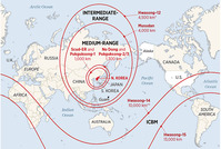 북한의 핵무기와 탄도미사일에 미국에 직접적인 위협이 되며, 위협 수준은 중국과 러시아 다음이라고 미국의 한 씽크탱크가 평가했다. 이 평가에 따르면, 한국은 현재 북한이 보유한 잠수함발사 탄도미사일(SLBM)을 요격할 역량이 없다.