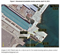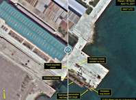 북한 함경남도 신포조선소에서 신형 잠수함 건조시설 앞으로 옮겨졌던 잠수함발사탄도미사일(SLBM) 시험용 반잠수 바지선이 원위치로 복귀했다. 15일 오후 5시 현재까지 특별한 징후가 보이지 않아 4월25일 건군절 때 도발할 가능성도 점쳐진다. 38노스 "신포조선