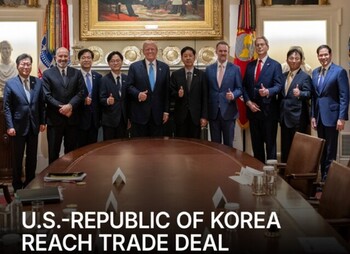 지난달 31일(현지시각) 미국 백악관이 전날 한국과 미국이 타결한 무역 협정에 대해 "대단히 성공적"이라고 평가했다. 백악관은 특히 "도널드 트럼프 대통령이 또 하나의 역사적인 무역 협정을 한국과 체결했다"면서 트럼프 대통령과 한국 정부 무역 협상단이 협상 타결 후 백