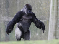 사람처럼 선 자세로 두 다리로만 걷는 고릴라의 동영상이 영국 인터넷 사용자들 사이에 폭발적인 인기를 얻고 있다. 미국의 CBSnews.com 인터넷판은 영국 켄트지역의 포트 림프네 야생동물원의 고릴라 ‘암밤’의 서서 걷는 동영상이 인터넷 이용자들에게 급속히 확산되고 있