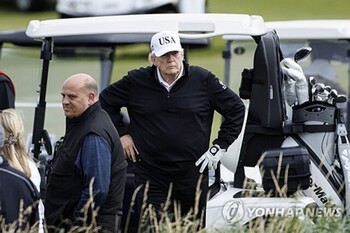직접 카트 운전하며 라운딩 즐긴 트럼프 … 가족 소유 골프장 홍보 논란도