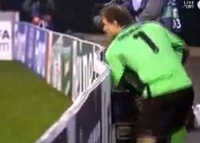 축구 경기 도중 골키퍼가 경기장을 뛰쳐나와 소변을 보는 장면이 생중계 돼 국제적 망신을 사고 있다.미국 스포츠 채널 ESPN은 "(한국시각)10일 독일 슈투트가르트의 홈구장 '메르세데스-벤츠 아레나'에서 열린 2009-2010 UEFA 챔피언스 리그 조별예선 슈투트가르