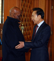 이명박 대통령은 23일 OECD DAC(개발원조위원회) 가입과 관련, "전후 남의 나라로부터 받던 나라에서 지원, 협력하는 세계 유일, 최초의 나라가 됐다"고 말했다. 이 대통령은 이날 한.아프리카 포럼 참석차 방한한 아프리카 각국 수석대표들과의 만찬에 앞서 이같이 말