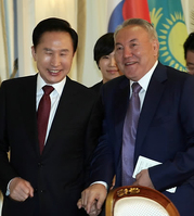 카자흐스탄을 국빈방문 중인 이명박 대통령은 13일 오전(현지 시각) 아스타나 대통령궁에서 누르술탄 나자르바예프 카자흐스탄 대통령