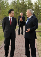 중앙아시아 2개국 순방을 계속하고 있는 이명박 대통령은 12일(현지시간) 두번째 방문국인 카자흐스탄에 도착, 수도 아스타나에서 공식 일정을 시작했다. 이 대통령의 첫 일정은 누르술탄 나자르바예프 대통령의 사저(다차)에서 나자르바예프 대통령과의 '사우나 회동'.