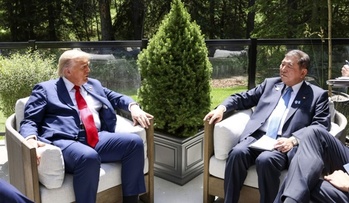 도널드 트럼프 미국 대통령이 16일(현지시각) 캐나다 앨버타주의 휴양도시 캐내내스키스에서 열린 주요 7개국(G7) 정상회의 참석을 계기로 키어 스타머 영국 총리와 양자회담을 하고 양국간 무역협정을 체결했다.트럼프 대통령이 전세계 무역상대국에 부과한 상호관세를 4월9일