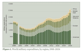 세계 곳곳의 전쟁과 안보 이슈로 인해 지난해 각 국의 군비 지출 합계가 3900조원을 넘어서며 사상 최대폭으로 치솟았다. 세계 군비 지출은 10년 연속 상승세를 이어가고 있다.28일(현지시각) 스톡홀름 국제평화문제연구소(SIPRI)의 '2024 세계 군사 지출 동향'