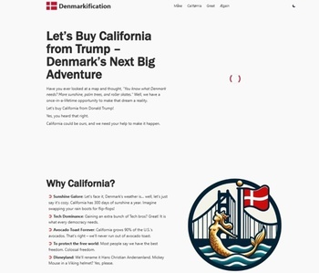 도널드 트럼프 미국 대통령의 '그린란드 인수' 야욕에 대응해 그린란드를 자치령으로 둔 덴마크에서 '캘리포니아를 사자(buy California)'라는 온라인 청원 운동이 벌어지고 있다.트럼프 대통령의 영토 야욕을 조롱하고 풍자하는 이 청원에는 벌써 20만명 이상이 동참