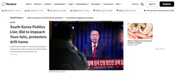 7일 윤석열 대통령에 대한 국회 탄핵소추안 표결이 의결 정족수 부족으로 무산된 소식을 외신들도 신속하게 보도했다.AP통신과 로이터통신, AFP통신 등은 이날 밤 일제히 '한국 국회, 대통령 탄핵 실패' 제하의 기사를 긴급 기사로 타전했다.로이터는 "윤석열 대통령이 야당